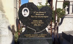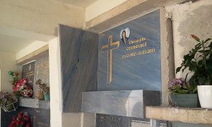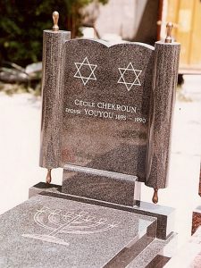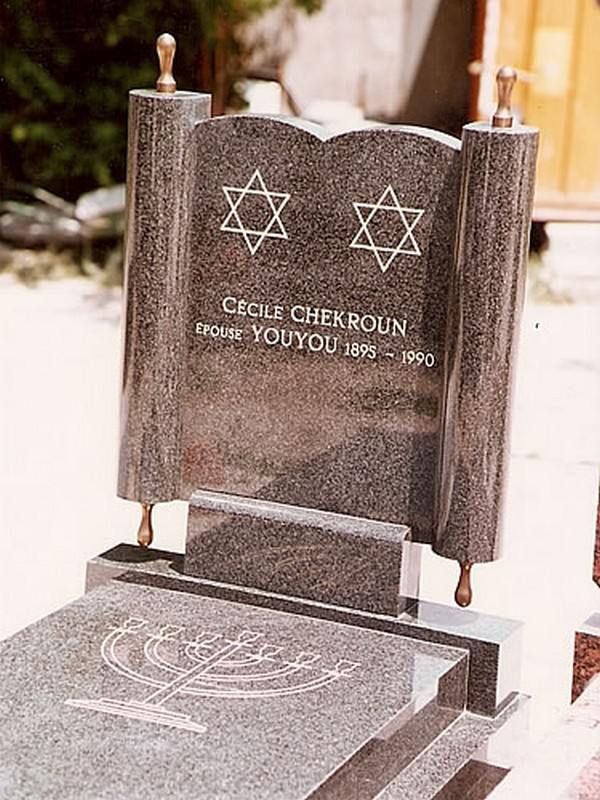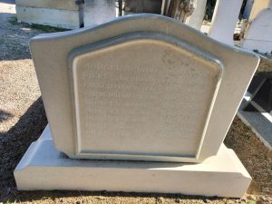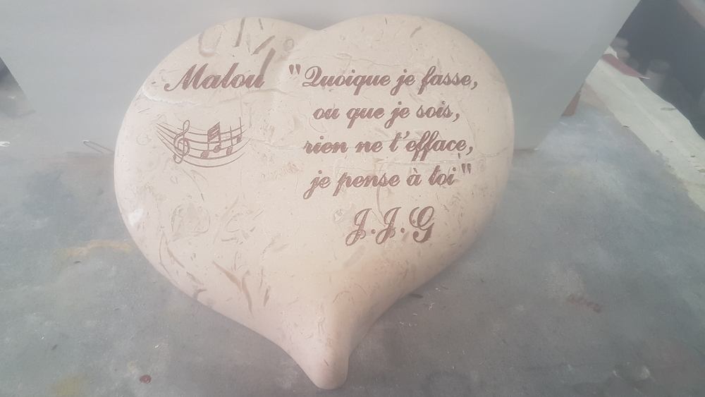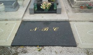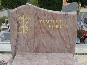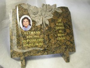 Monument en granit « FLAMINGO »avec ciselure des côtés de la stèle et lettres en bronze.
