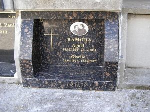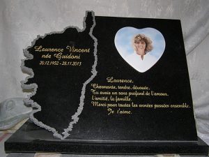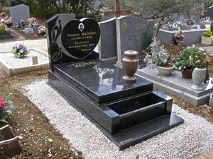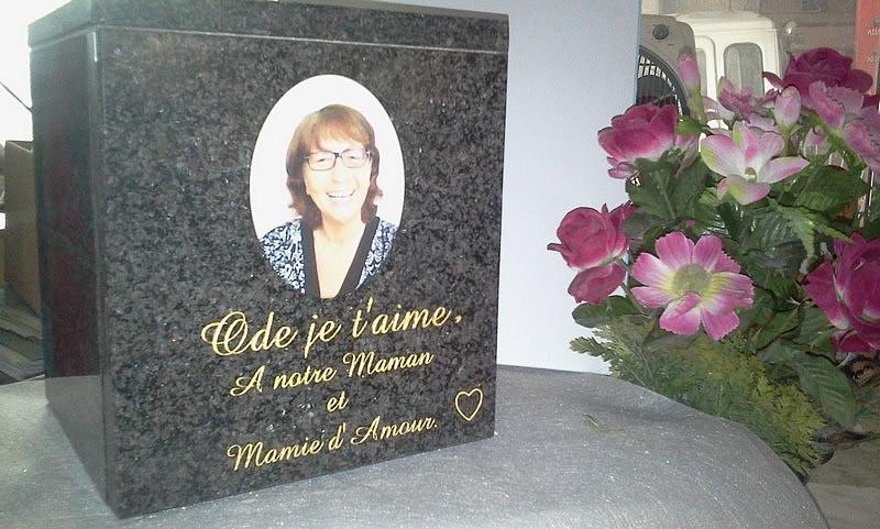 URNE DANS PLAQUETTE FUNERAIRE EN GRANIT NOIR D AFRIQUE