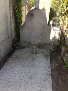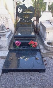 Stéle modèle « TORRA » en taille massive, réalisée en granit noir d’AFRIQUE, avec poignée en bronze.